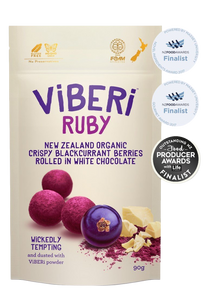 A Sprinkle of ViBERi's RUBY Organic Chocolate Rolled Blackcurrants and desiccated coconut